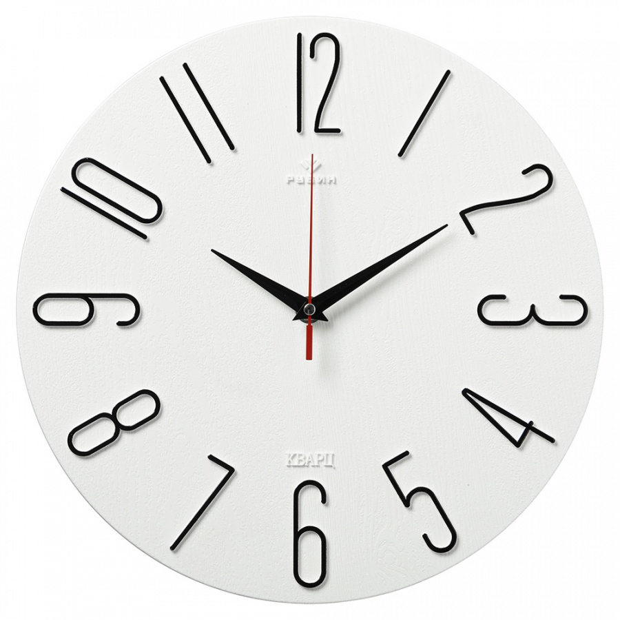 Часы настенные Рубин d=30см, корпус белый+черный "Классика"