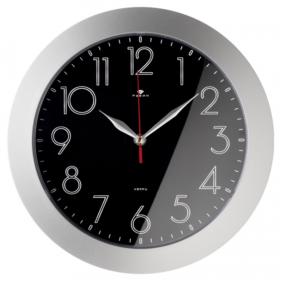 Часы настенные Рубин круг d=31см, корпус серебряный "Классика"