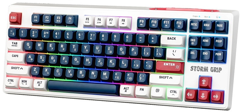 —Клавиатура Defender Storm Grip GK-188 RGB Led Беспроводная (WirelessUSB,BT) White+Blue