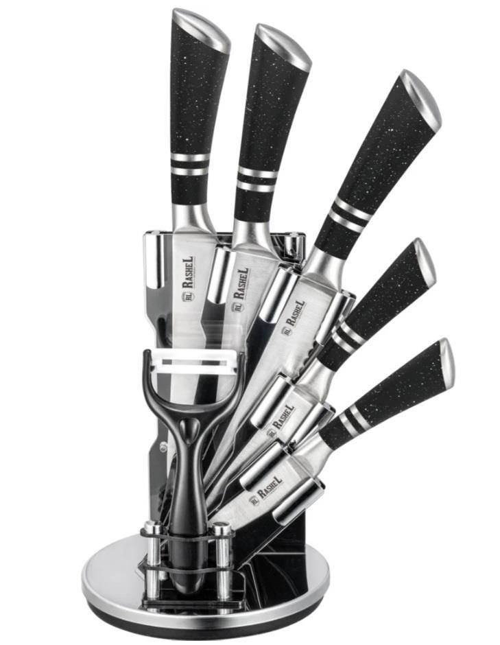 Нож поварской, нож для тонкой нарезки, нож для хлеба, нож универсальный, нож для очистки, подставка