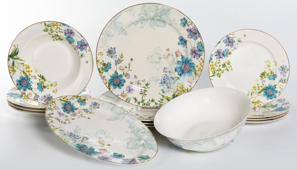 4 мелкие тарелки 205мм + 4 глубокие тарелки 215мм 255мл+ 4 мелкие тарелки 270мм + салатник 1315мл 230мм + блюдо овальное 305мм