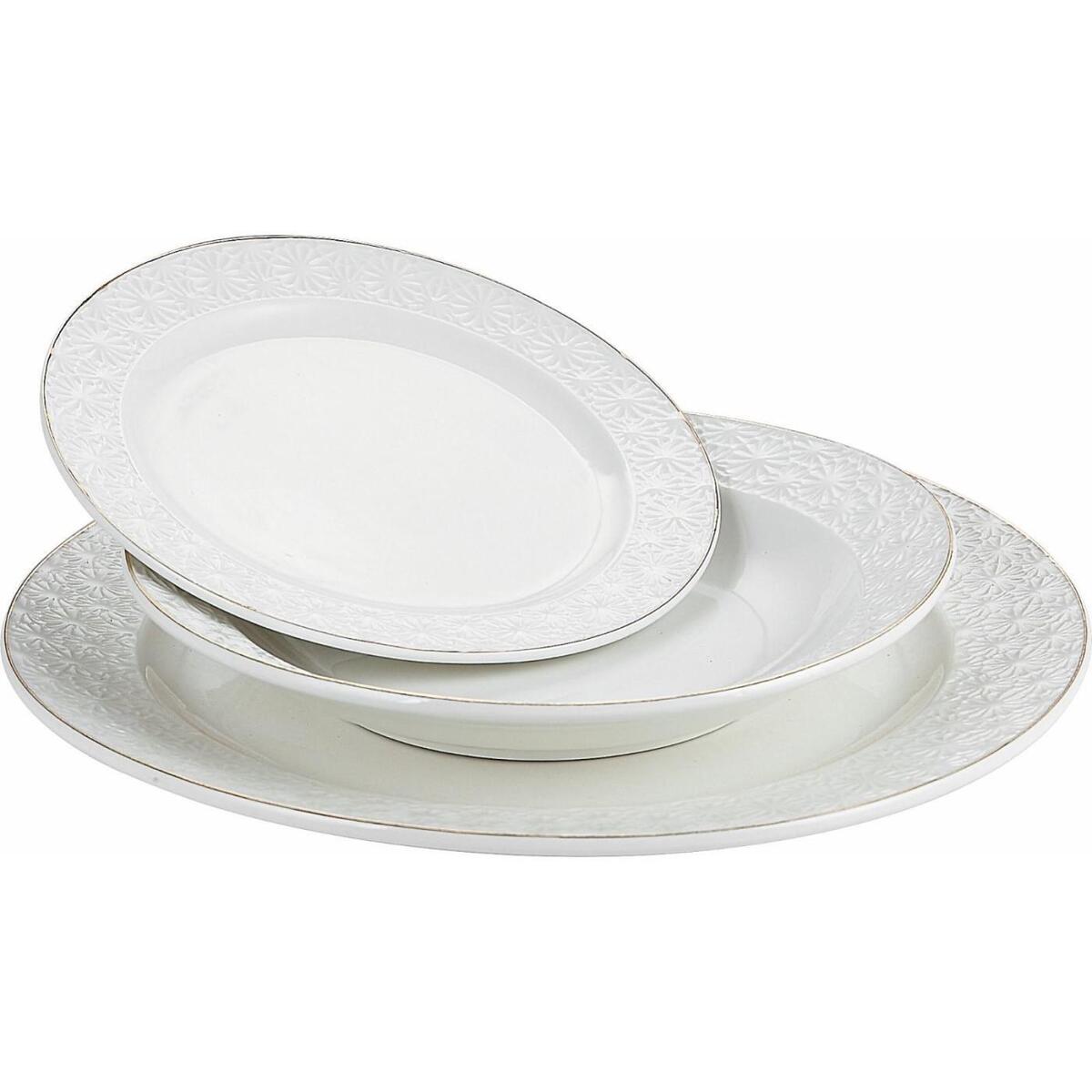 1 тарелка обеденная 27 см 6 шт., 1 тарелка суповая 20,5см 6 шт.,1 тарелка десертная 18 см 6 шт.