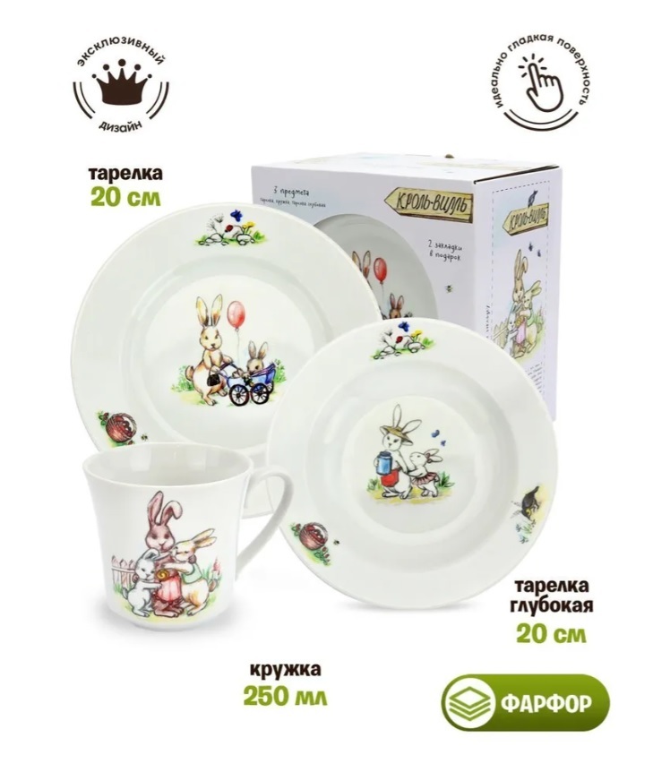 1 тарелка плоская, 1 тарелка глубокая, 1 кружка
