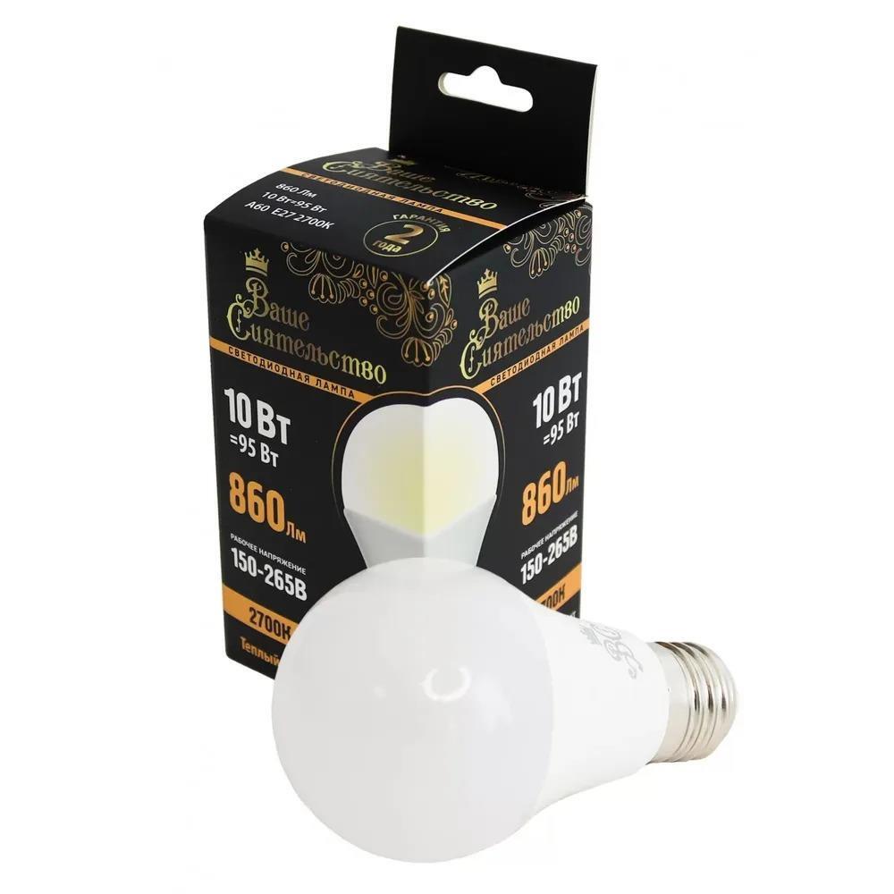 —Лампа Ваше Сиятельство ЛОН A60 E27 10W(860lm) 2700K, матовая, IC-драйвер