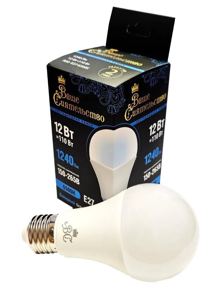 —Лампа Ваше Сиятельство ЛОН A60 E27 12W(1240lm) 6500K, матовая, IC-драйвер