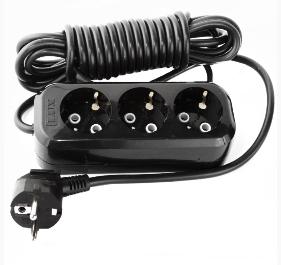 —Сетевой удлинитель LUX У3-Е-03 3-местный с з/к (250В/16а/3м)черный