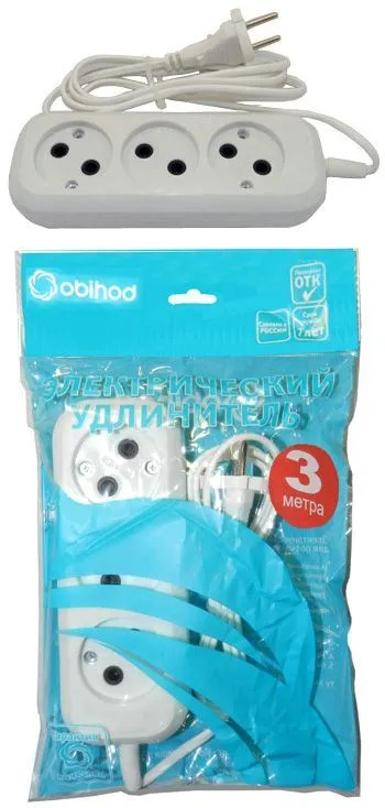 —Сетевой удлинитель Jett (Obihod) ШВВП 3роз. 3м 6А белый РС-3
