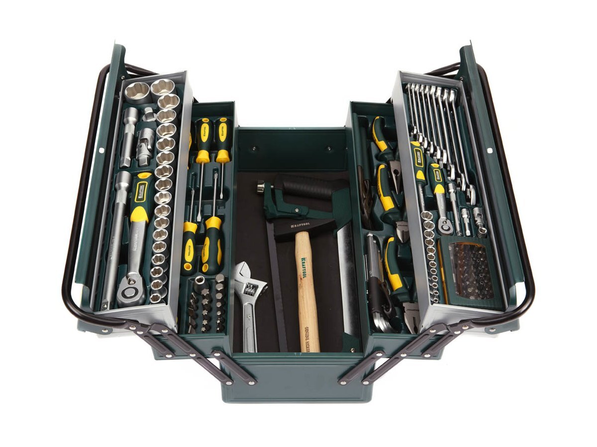—Набор инструментов Kraftool слесарно-монтажный, металлический ящик, 131 предм.