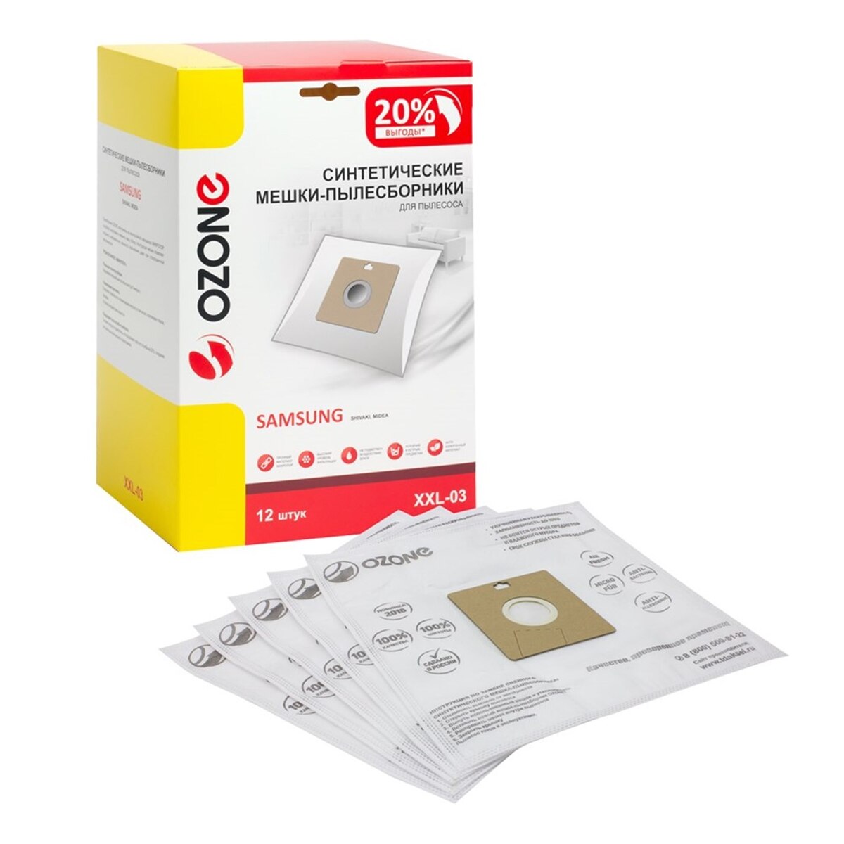 Пылесборник синтетический Ozone д/пылесосов Samsung VP-77 (XXL-03)12 шт