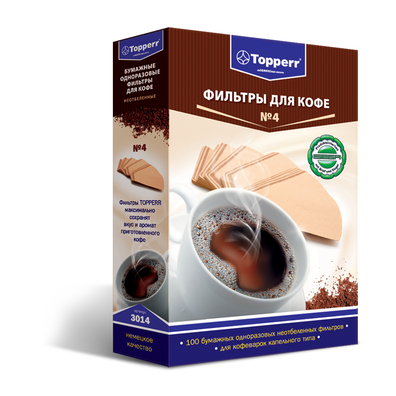 Фильтр бумажный для капельных кофеварок №4 Topperr неотбеленный 3014