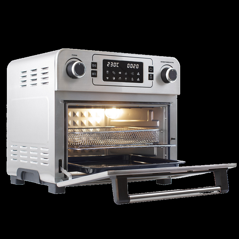 1 решётка, 1 противень, 1 вертел, 1 шашлычница, 1 камень для пиццы, 1 корзина для жарки, 1 поддон для крошек