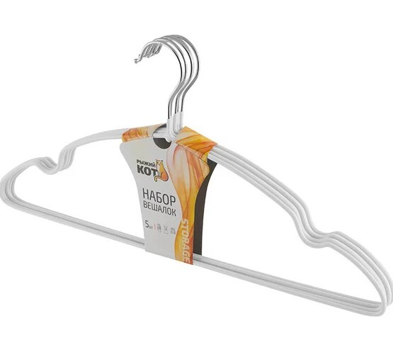 —Набор вешалок металлических с ПВХ покрытием Рыжий кот 5 шт белый 311380