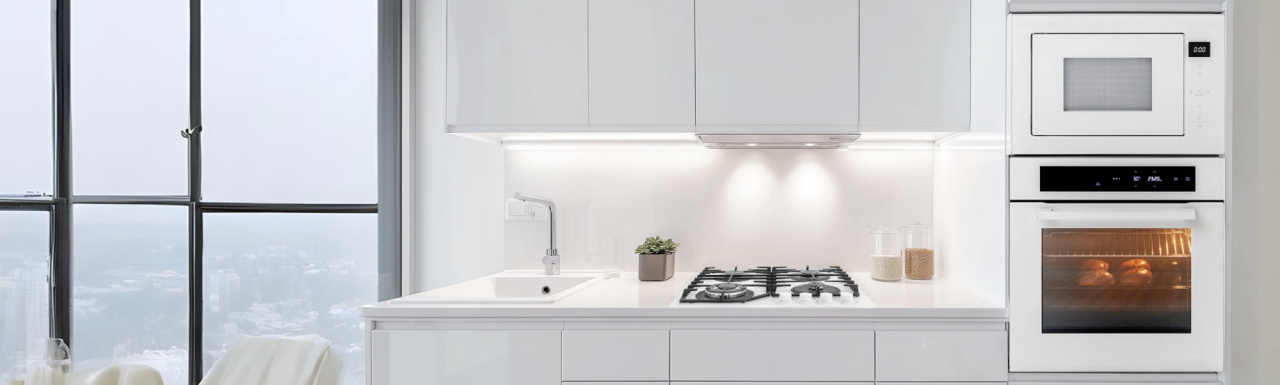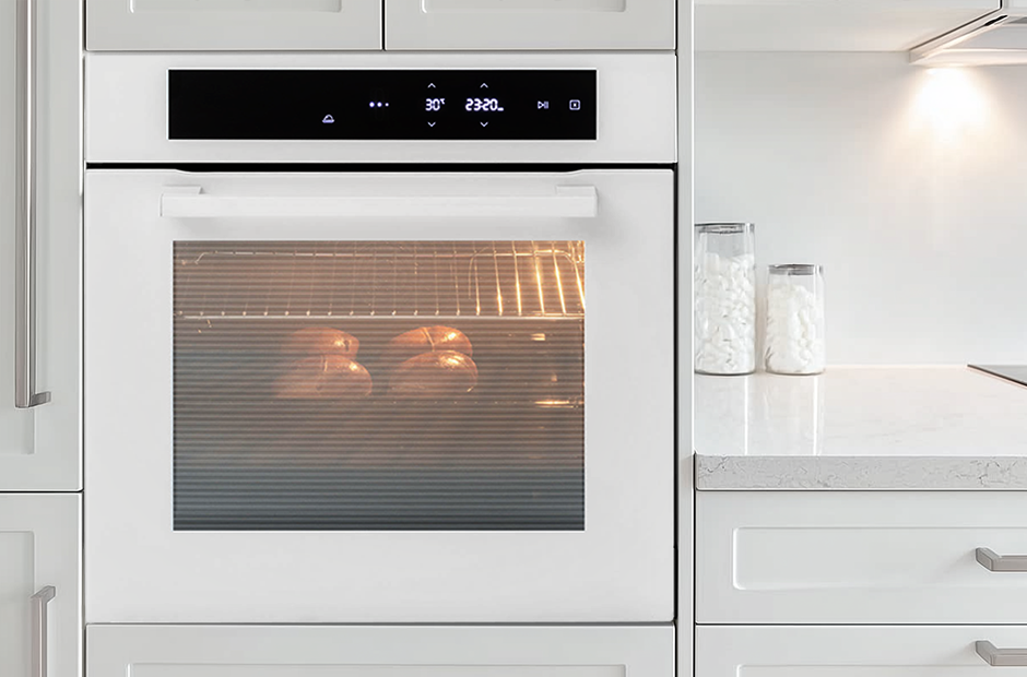 Белый встраиваемый духовой шкаф идеально сочетается со светлыми, темными и натуральными оттенками мебельных фасадов кухни. Служит органичным элементом или контрастным акцентом интерьера, благодаря чему кухня приобретает эффектный и презентабельный облик.